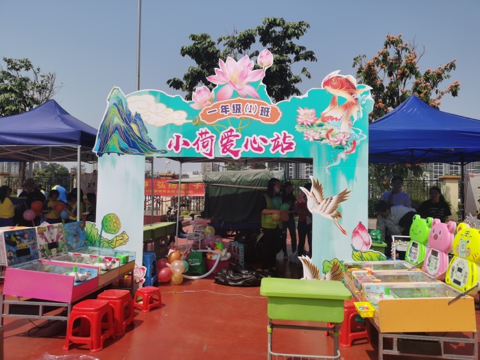義賣活動(dòng)熱火朝天的開展起來,各個(gè)攤位陸續(xù)傳來了同學(xué)們賣力的吆喝聲,他們化身售貨員、推銷員、收款員......向前來購買的同學(xué)、老師用心推薦書籍、文具、美食。為了吸引更多買家,同學(xué)們集思廣益,在攤位旁邊開展刮刮樂抽獎(jiǎng)、套圈等刺激消費(fèi)的活動(dòng),當(dāng)買家猶豫不決時(shí),這些“小小商家”還會果斷推出買一送一的優(yōu)惠活動(dòng),將可愛的小禮品送到顧客手上。家長們?yōu)榱苏袛堫櫩鸵彩钩隽藴喩斫鈹?shù):有的身著玩偶熱舞不斷;有的自備音響高聲歡唱;有的甚至把一些彈珠游戲機(jī)帶進(jìn)校園......小小的籃球場上,拎著一袋袋戰(zhàn)果的買家們笑了,拿著錢準(zhǔn)備放進(jìn)捐贈箱中的賣家也笑了。
