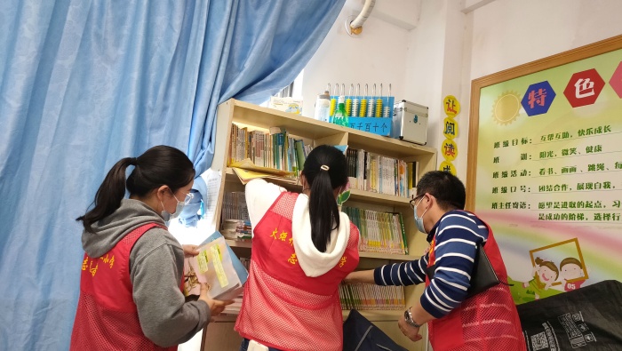 第三組由支部宣傳委員鄭康樂同志帶隊深入各個班級詢問師生,了解圖書角的藏書情況,再一次查看班級圖書是否適合學(xué)生閱讀,確保學(xué)生的閱讀書籍內(nèi)容健康和向上,為學(xué)生創(chuàng)設(shè)更好的閱讀環(huán)境。