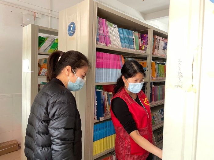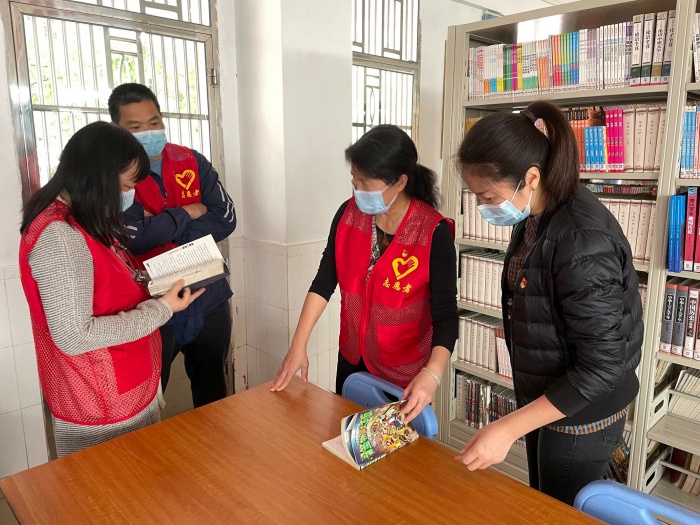 按計劃安排,黨支部兵分三路開展活動。第一組由支部周瑞珍書記帶隊走進圖書室,對圖書室的書籍展開全面自查,確保不存在不適合學(xué)生閱讀的讀物,進一步保障了學(xué)生閱讀的書籍內(nèi)容健康、向上,充分發(fā)揮課外讀物育人功能。