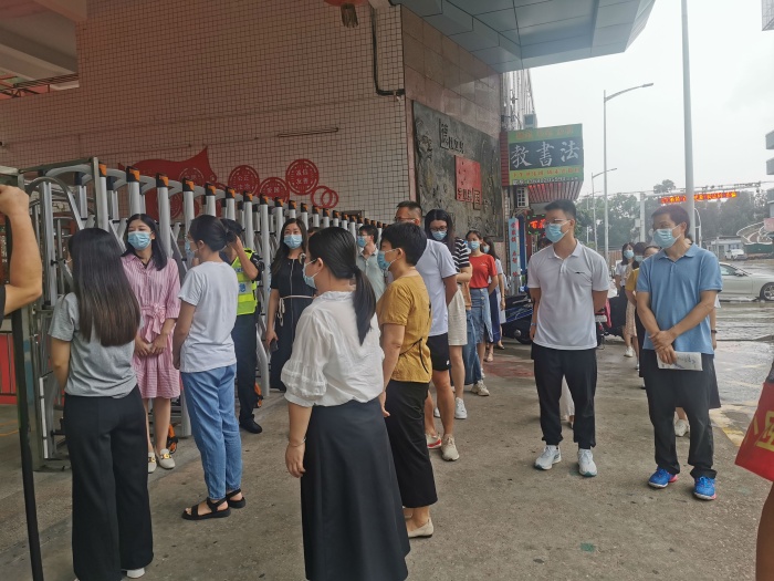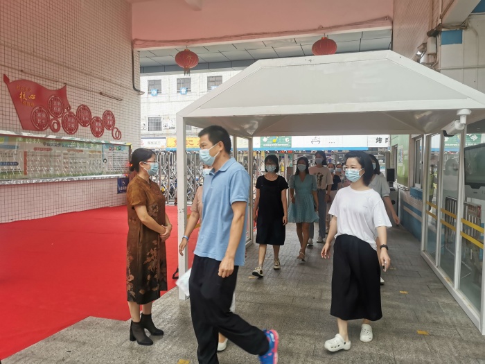 演練開始,由教師扮演學(xué)生每人間隔一米,有序排隊(duì),逐個(gè)進(jìn)行入校體溫檢測。值日行政人員、教師和門衛(wèi)組成護(hù)導(dǎo)隊(duì),提醒學(xué)生保持安全距離,并對學(xué)生的體溫進(jìn)行測量、登記。體溫異常學(xué)生在值日行政人員的帶領(lǐng)下前往觀察區(qū)和隔離區(qū)。隨即校醫(yī)對學(xué)生進(jìn)行近14天旅居史調(diào)查詢問、體溫復(fù)測和初步診斷,做好記錄后,通知家長來接,由其家長按要求及時(shí)把該學(xué)生送到定點(diǎn)醫(yī)院并按照醫(yī)療機(jī)構(gòu)指引進(jìn)行處理。