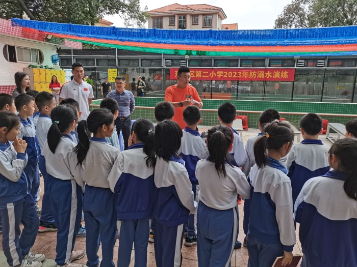 演練正式開始前,教練員為師生開展了一場防溺水安全教育講座。教練員結(jié)合近年來發(fā)生的溺水死亡事例,分析造成溺水事故的原因,講解了私自下水的危害,并向師生傳授了防溺水的安全知識和溺水事故的應(yīng)急處理。