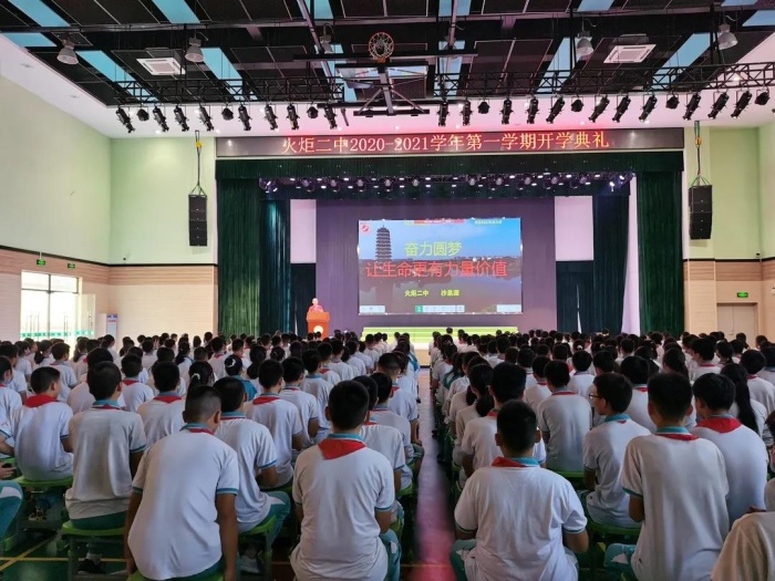 秋高氣爽,碩果飄香,又是一年開(kāi)學(xué)季。2020年9月1日上午8:30分,火炬二中全體師生在田徑場(chǎng)上莊嚴(yán)列隊(duì),隆重舉行新學(xué)期開(kāi)學(xué)典禮暨升旗儀式。伴隨著雄壯的國(guó)歌聲,全體師生行注目禮,少先隊(duì)員敬隊(duì)禮。
