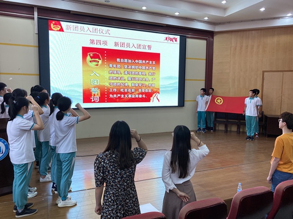 在響亮的國歌聲中拉開了入團儀式的帷幕,學(xué)校團委書記葉大貴宣布新團員名單,校團員教師、老團員為新團員佩戴團徽,頒發(fā)團章,每個團員從佩戴上團徽的這一刻起,就要認(rèn)清自己肩負(fù)的責(zé)任,努力履行團員的義務(wù),用實際行動來表明自己無悔于“共青團員”這個光榮的稱號。團旗下嚴(yán)肅、莊嚴(yán)的入團宣誓讓新團員將入團誓詞牢記在心,并以此激勵自己作為一名共青團員的榮譽感和責(zé)任感。隨后入團介紹人代表黃濤同學(xué)宣讀團員的權(quán)利和義務(wù),新團員代表楊雅婷同學(xué)發(fā)言:作為一名中學(xué)生能積極申請入團并被批準(zhǔn)入團,感到非常的光榮,今后將會繼續(xù)努力,造就成為社會的有用之材,老團員代表李韻兒同學(xué)更是對新加入的團員提出了寄望,希望大家時刻牢記今天的入團宣誓,嚴(yán)格要求自己,在學(xué)校里好好學(xué)習(xí),積極向上,爭做老師的好幫手,同學(xué)的好榜樣。