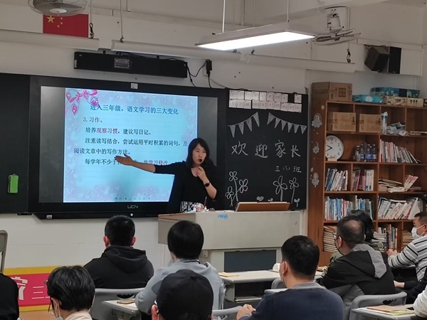 在家長(zhǎng)會(huì)上,班主任向家長(zhǎng)全方位地介紹了孩子在學(xué)校的學(xué)習(xí)和生活情況,并引領(lǐng)家長(zhǎng)共同學(xué)習(xí)《廣東省中小學(xué)家庭教育親子溝通指引》文件。同時(shí),通過(guò)學(xué)校班主任工作室制作的微課,班主任還和家長(zhǎng)們具體分享了親子教育的溝通技巧。隨后,各個(gè)學(xué)科教師基于學(xué)科特點(diǎn),結(jié)合教育實(shí)例,就孩子學(xué)科學(xué)習(xí)、學(xué)段特點(diǎn)、習(xí)慣培養(yǎng)及家校配合方面進(jìn)行了深入、細(xì)致地交流和探討。