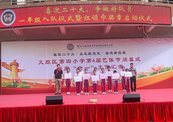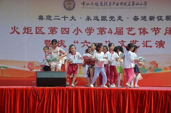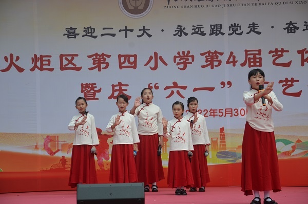 火炬區(qū)第四小學第四屆藝體節(jié)”閉幕式暨“喜迎二十大?永遠跟黨走?奮進新征程”主題文藝匯演由兩個篇章組成,分為童心向黨篇和強國筑夢篇。