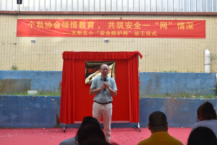 活動最后,區(qū)教育事務(wù)指導(dǎo)中心主任鐘海清進行了活動總結(jié)講話,他表示:安全防護網(wǎng)的安裝保障了五小師生的安全,相信五小教育教學(xué)工作在個私協(xié)會的大力支持下一定會越來越好。