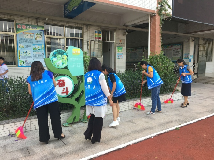 親子義工隊成員、教師志愿者們利用放學后的時間留校開展本次愛國衛(wèi)生運動。在大掃除活動中,志愿者們熱情高昂,分工明細,配合默契,拿起抹布、舞動掃帚,對校園內(nèi)外、教室、操場等進行擦拭、垃圾清除,對走廊、過道、樓梯及衛(wèi)生死角進行了一次徹底的沖洗,做到校園及周邊公共區(qū)域干凈、整潔、清爽,經(jīng)過大家的辛勤勞動,整個校園環(huán)境煥然一新。整個過程體現(xiàn)出“我奉獻、我快樂、我參與、我成長”的精神內(nèi)涵。