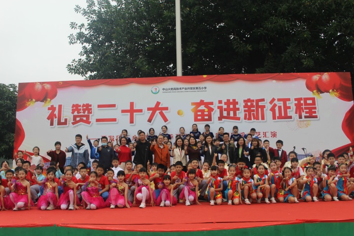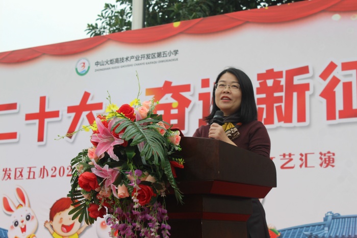 9時30分,莊嚴(yán)的升旗儀式拉開了“禮贊二十大 奮進(jìn)新征程”2022—2023學(xué)年度春季學(xué)期開學(xué)典禮暨社團(tuán)風(fēng)采文藝匯演的序幕。黨支部書記、第五小學(xué)校長陳肖影作開學(xué)典禮致辭,并為全校師生上開學(xué)第一節(jié)思政課。陳校長代表學(xué)校向辛勤工作的教職員工和不斷進(jìn)取的同學(xué)們表示新學(xué)期的誠摯問候。她向同學(xué)們提出五個“心”的希望:一是收心:盡情玩耍過后要收心投入學(xué)習(xí);二是決心:下定決心努力做到更好;三是信心:有信心戰(zhàn)勝一個個困難;四是愛心:做一個熱愛集體、熱心助人的學(xué)生;五是用心:用心學(xué)習(xí)才能學(xué)有所成。最后,陳校長帶領(lǐng)學(xué)生一起喊出“相信自己,我能成功”“鼓勵自己,天天成功”“超越自己,一定成功”的錚錚誓言,以無畏之心,踔厲奮發(fā),砥礪前行。隨后,由德育主任曹怡宣讀榮獲第一學(xué)期“品學(xué)兼優(yōu)”和“水潤班級”的名單,并頒證書、獎品,并寄語更多的學(xué)生和班集體奮起直追,突破自己,早日加入優(yōu)秀的行列中來。