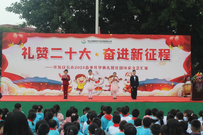 瑞虎騰躍辭舊歲,玉兔呈祥送春來。疫去春回萬物新,乘風(fēng)遠(yuǎn)航啟新程。2023年2月6日上午,滿載著喜悅與祝福,懷揣著憧憬和夢想,開發(fā)區(qū)第五小學(xué)舉行了“禮贊二十大 奮進(jìn)新征程”2023春季學(xué)期開學(xué)典禮暨社團(tuán)風(fēng)采文藝匯演,共同喜迎新學(xué)期的到來。