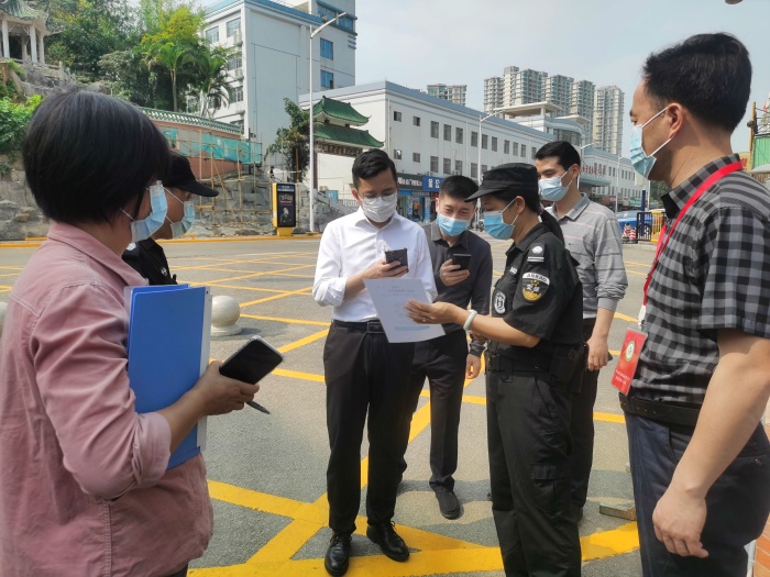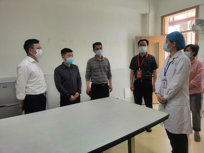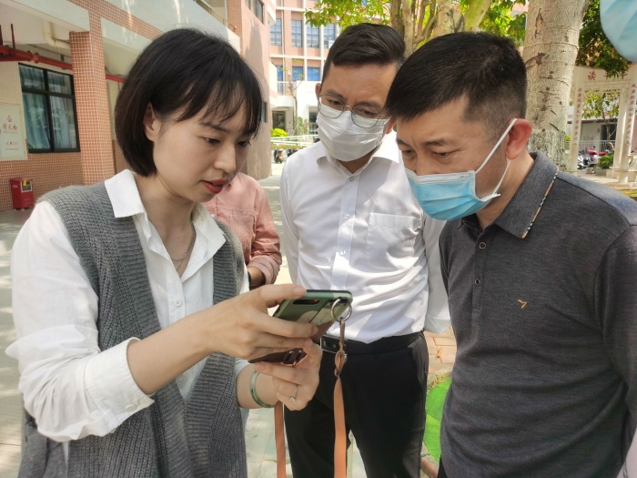 不逾越校園疫情防控防線,胡楠副書記和張亮副局長先向保安員提供綠色粵康碼和行程卡才進(jìn)入校園。在蔡長青校長的陪同下,胡楠副書記首先詢問學(xué)校教職工及學(xué)生總?cè)藬?shù),然后詳細(xì)了解疫情下學(xué)校具體開展的常態(tài)化防疫工作以及制定的防疫措施,并就每兩個(gè)星期開展一次的師生健康信息的收集、運(yùn)用與管理隨機(jī)抽查了幾位班主任的工作情況。后勤部陳玉苗主任如實(shí)匯報(bào)全校教職工及學(xué)生新冠疫苗的接種情況以及第三針疫苗接種的具體數(shù)據(jù)。另外,隨著本周疫情的嚴(yán)重化,學(xué)校要求學(xué)生進(jìn)入校園必須佩戴口罩,對忘戴口罩的學(xué)生由保安員發(fā)放。除此,學(xué)校大課間、早操、圖書室等密集活動(dòng)已暫停。