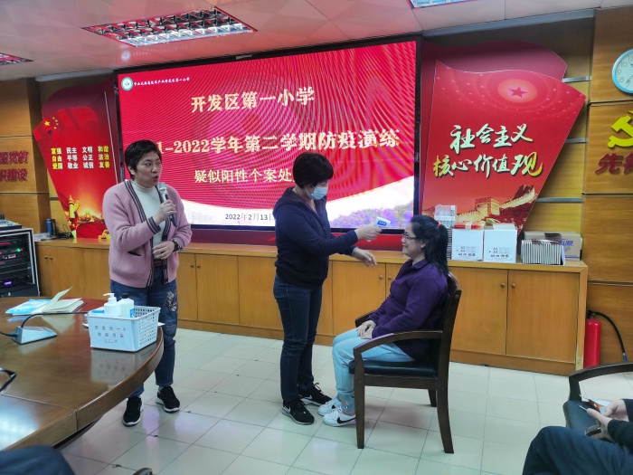 開學(xué)在即。為正確地應(yīng)對當(dāng)前疫情狀態(tài),為有效提升教師們的防疫應(yīng)急處置能力,2月13日,開發(fā)區(qū)第一小學(xué)舉行了開學(xué)返校防疫應(yīng)急演練。此次防疫演練由后勤部負責(zé)安排。其中,后勤部主任陳玉苗和保健老師黃杏華擔(dān)任應(yīng)急演練現(xiàn)場解說員,鄭素云老師扮演班主任,梁秀珍老師扮演學(xué)生。其他老師及領(lǐng)導(dǎo)參與觀摩了本次演練。