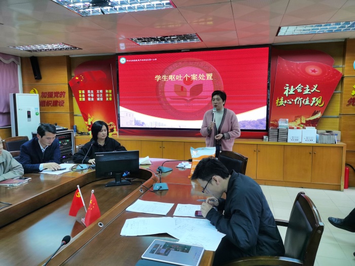 四位老師首先通過設(shè)置學(xué)生在上課期間出現(xiàn)發(fā)熱癥狀的情境,引導(dǎo)老師們在這種情況下,作為任課老師要上前詢問情況、安撫情緒,并立即向班主任報告。作為班主任要立刻聯(lián)系發(fā)熱學(xué)生的家長,向其報告具體情況,并詢問學(xué)生近期出行情況。然后,班主任務(wù)必按既定路線將出現(xiàn)發(fā)熱癥狀的學(xué)生帶至留觀室進行復(fù)測,任課教師將其他學(xué)生帶至指定區(qū)域。最后還要報告分管校長,啟動應(yīng)急預(yù)案,同時,對教室進行徹底消毒。