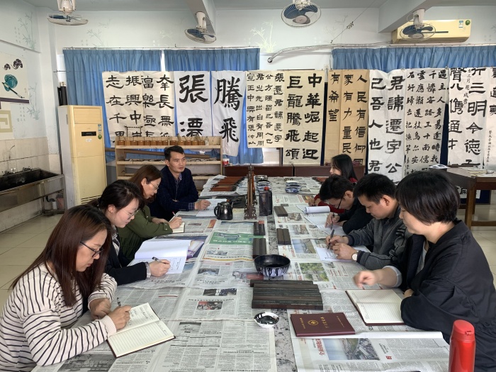 為了促進開發(fā)區(qū)第一小學(xué)書法課題研究,增強學(xué)生學(xué)習(xí)書法的濃厚興趣,檢驗課題研究進程和成果。近日,市級立項課題《中華優(yōu)秀傳統(tǒng)文化視域下習(xí)字立人小學(xué)書法教育實踐研究》的課題組全體成員參加了本次研討會。