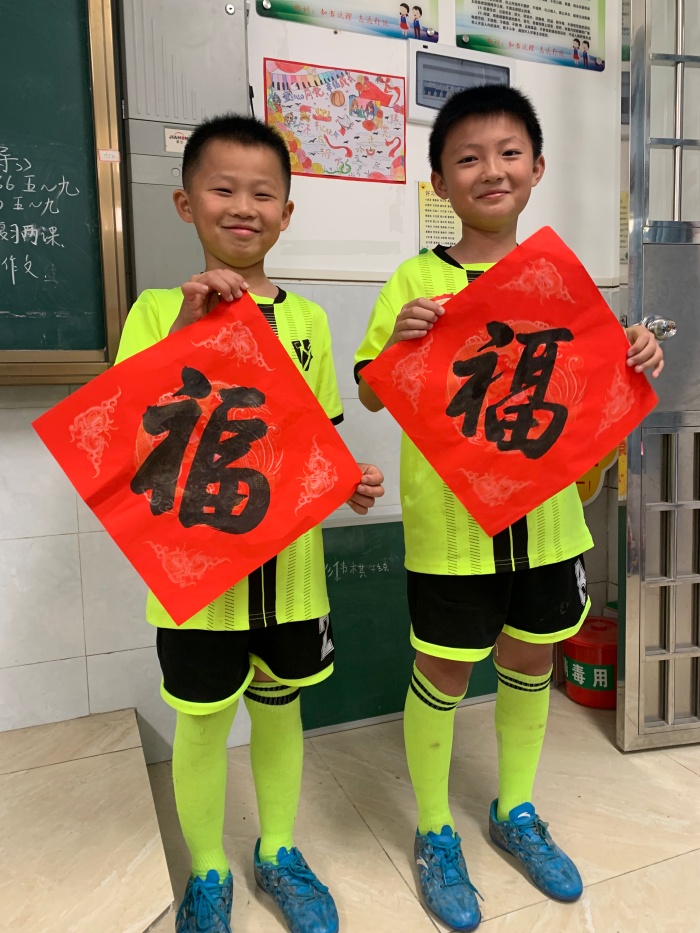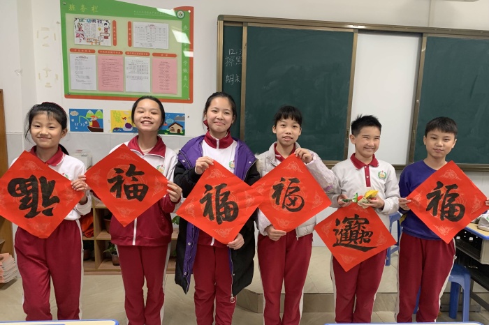 丘志偉老師提到,本次元旦送“?!弊值哪康挠袃蓚€(gè),一是在新年起始,給孩子們送去滿滿的福氣,二是給孩子們提供一個(gè)臨摹的范例,讓孩子們寫(xiě)好漢字,傳承中華優(yōu)秀傳統(tǒng)文化。本學(xué)期五(7)班的孩子們?cè)跁?shū)法課上表現(xiàn)很好,遵守紀(jì)律,熱愛(ài)老師,踏實(shí)努力,孩子們和老師們的感情深厚。因此,丘老師主動(dòng)利用雙休時(shí)間,自行購(gòu)買(mǎi)書(shū)寫(xiě)紙,揮筆書(shū)寫(xiě)了50張“?!弊仲?zèng)送每一位學(xué)生。