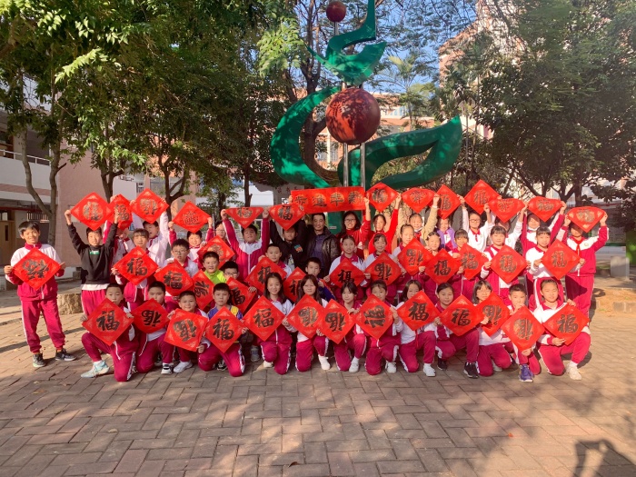 “?!弊质怯砷_(kāi)發(fā)區(qū)第一小學(xué)五(7)班書(shū)法老師丘志偉親自提筆書(shū)寫(xiě),由班主任錢(qián)玉老師協(xié)助分發(fā)至每一位孩子手中。拿到禮物,孩子們臉上寫(xiě)滿了幸福和快樂(lè)。