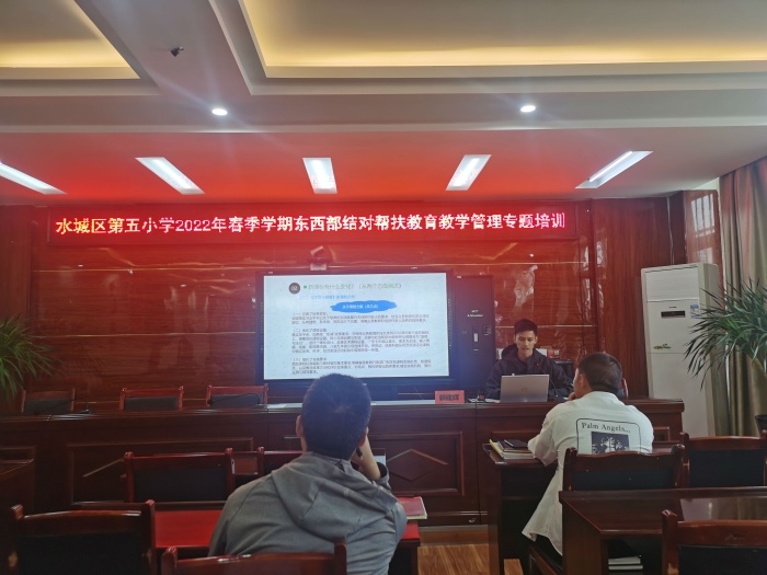 第3周的教學幫扶重點是從教學實踐提升至教育理論。從6月15日至6月23日,開發(fā)區(qū)第一小學的3位老師聯(lián)合在六盤水市支教一年的李晶老師相繼舉辦講座。6月15日,賴建輝老師舉辦講座《傳承、創(chuàng)新、發(fā)展——新時代小學體育與健康課程新思路》,賴老師結合2022年體育新課標的新變化引導聽者如何在課堂教學中找準著力點,然后把新體育課標落細、落實、落好。6月16日,李晶老師在六盤水市水城區(qū)第五小學與水城區(qū)第二幼兒園教學研討活動中舉辦講座《好習慣,好人生》, 李老師建議幼兒教師應智慧結合兒童“敏感期”的特點,引導家長從心理準備、習慣培養(yǎng)和物品準備三方面著手,幫助兒童從幼兒園階段順利過渡到小學階段。講座得到聽者的一致認同。6月20日,黃玲老師舉辦講座《聚焦“雙減”:德育引領,以愛同行》, 分別從德育課程、校園文化、活動實踐和班級管理四個方面,介紹了開發(fā)區(qū)第一小學的德育工作開展情況,闡述個人向陽花般美好的德育理念,使聽者對德育工作有了進一步、深一層的理解。6月23日,年經(jīng)的賴志城老師以開發(fā)區(qū)第一小學訓練隊的訓練情況和大課間的活動案例成功舉辦講座《我運動,我快樂,“雙減”背景下課余體育活動的開展》,使聽者輕松地領悟到課余體育活動“既鍛煉身體,又愉悅身心”的內涵。