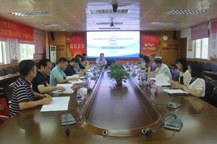 開展教育科研是提高教師素質(zhì),促進教師專業(yè)發(fā)展,不斷推進教育改革的重要途徑。為了進一步提高教師教育科研水平,夯實研究過程,理清研究思路,2022年6月25日下午,在開發(fā)區(qū)第一小學(xué)會議室舉行了題為《基于智能交互技術(shù)培養(yǎng)小學(xué)生自主學(xué)習(xí)能力的策略研究》的廣東省信息技術(shù)提升工程2.0專項課題開題報告會。中山市教研室陳明宏老師、教師教育發(fā)展中心崔裕靜老師、中山市實驗小學(xué)黃偉祥主任、東區(qū)水云軒小學(xué)吳錦開主任、開發(fā)區(qū)教育事務(wù)指導(dǎo)中心謝柏祥校長、開發(fā)區(qū)中心小學(xué)孫寧副校長應(yīng)邀出席了本次會議。