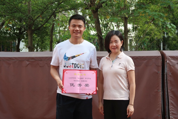 經(jīng)過一番激烈的角逐,開發(fā)區(qū)一幼盧杰權(quán)老師獲得了“優(yōu)秀獎”的好成績。2021年5月17日上午,在升國旗儀式下,開發(fā)區(qū)一幼為盧杰權(quán)老師舉行了隆重的頒獎儀式,蘇丹娜副園長為其頒發(fā)獲獎證書。