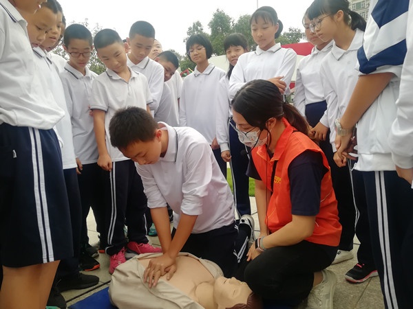 觸電體驗(yàn)區(qū)、模擬滅火體驗(yàn)區(qū)、防護(hù)用品體驗(yàn)區(qū)、應(yīng)急救護(hù)學(xué)習(xí)體驗(yàn)區(qū)、醉駕體驗(yàn)區(qū)等體驗(yàn)區(qū)前人頭攢動(dòng)。師生們興致盎然,或戴上防毒面具,或披上防火毯,或忐忑地體驗(yàn)“觸電”感覺,或戴上模擬醉駕的特制眼鏡繞行雪糕筒,或蹲下來(lái)練習(xí)心肺復(fù)蘇。最后集中時(shí),各班代表分享了自己的體驗(yàn)感受,工作人員也向同學(xué)們介紹了幾種應(yīng)急時(shí)常犯的錯(cuò)誤,希望大家學(xué)會(huì)規(guī)避這些錯(cuò)誤。