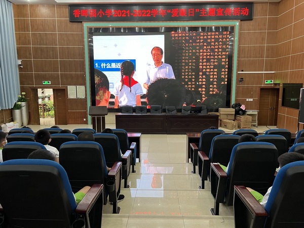 2022年6月6日是第27個(gè)全國(guó)“愛眼日”。當(dāng)天下午,香暉園小學(xué)報(bào)告廳座無(wú)虛席,三年級(jí)全體同學(xué)收看中山市教育和體育局組織的2022年全國(guó)“愛眼日”主題宣傳直播活動(dòng)。