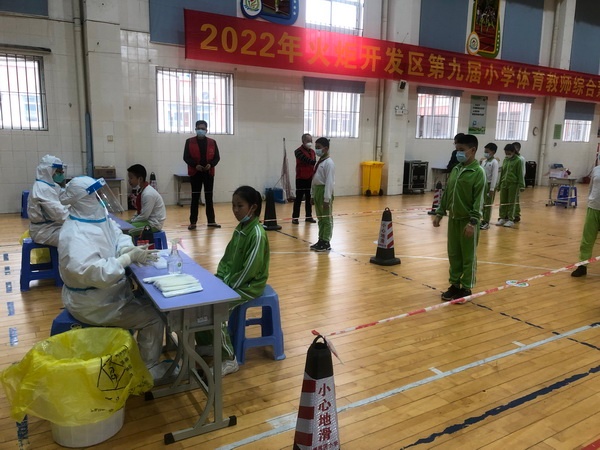 為進一步加強校園管理,抓實抓細疫情防控各項工作,保障“五一”節(jié)后返校安全,5月5日下午,開發(fā)區(qū)香暉園小學根據(jù)上級部門要求,開展了節(jié)后校園全員核酸檢測。學校黨員教師響應學校號召,積極投身到全員核酸檢測志愿服務工作中,堅決筑牢校園疫情防控屏障。