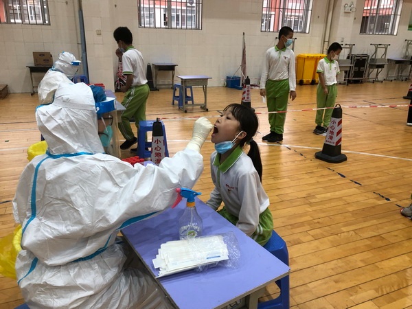 下午兩點,核酸檢測正式開始。黨員教師志愿者們各司其職,有的穿上防護服投身到核酸檢測信息采集工作中,有的維持好現(xiàn)場秩序,有的指引學生有序離場。香暉園小學為全校學生制作了核酸碼卡片,學生只需拿著核酸碼卡片就能自主完成掃碼工作,既提高了核酸檢測的效率,又減輕了班主任的工作量。在學校各部門的配合下,當日下午四點半,香暉園小學順利完成了對全體教職工和學生的核酸檢測采樣工作。