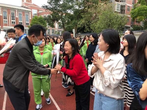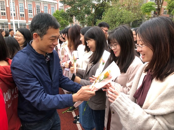 隨后,學(xué)校男教職工在歐陽祝棣校長的帶領(lǐng)下,為女教職工送上嬌艷欲滴的鮮花以表節(jié)日問候。接著,學(xué)生代表們?yōu)榕搪毠兯蜕鲜止ゑR賽克杯墊禮物。女教職工們手捧禮物,笑逐顏開,充分感受到節(jié)日的溫暖以及來自學(xué)校、學(xué)生的關(guān)懷。最后,學(xué)校行政班子與全體女教職工合影留念。