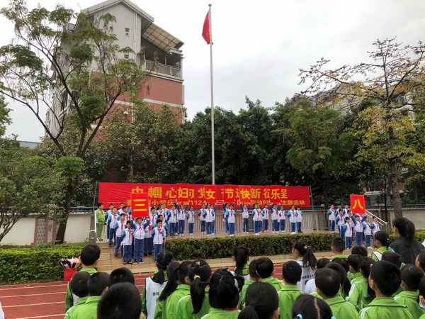 活動當(dāng)天,在莊嚴(yán)的升旗儀式后,三(6)中隊在中隊輔導(dǎo)員黃麗娜的帶領(lǐng)下獻(xiàn)上了主題演出。隊員們衣裳楚楚,配合整齊劃一的動作,通過婉轉(zhuǎn)動聽的歌聲,訴說著對女教職工的祝福。隊員們高高舉起的標(biāo)語“三八節(jié)日快樂”為表演畫上圓滿句號。