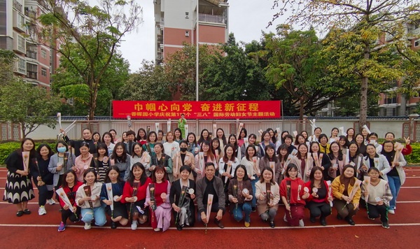 春臨盛世三月天,姹紫嫣紅映歡顏。為表達(dá)對女教職工的關(guān)懷和問候,3月7日上午,開發(fā)區(qū)香暉園小學(xué)全體師生齊聚操場,開展了主題為“巾幗心向黨 奮進(jìn)新征程”的慶祝第112個“三八”國際勞動婦女節(jié)主題活動。本次活動由四(3)中隊楊佳睿主持。