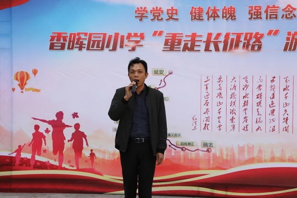 首先由主持人肖涵韻同學(xué)向全體師生簡(jiǎn)要介紹了活動(dòng)背景,隨后,香暉園小學(xué)黨支部書(shū)記歐陽(yáng)祝棣宣布活動(dòng)開(kāi)幕。