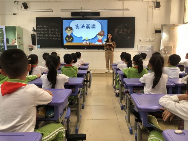 今年12月4日是第八個(gè)國(guó)家憲法日。為認(rèn)真學(xué)習(xí)貫徹習(xí)近平法治思想,引導(dǎo)廣大師生進(jìn)一步尊崇憲法、學(xué)習(xí)憲法、維護(hù)憲法、運(yùn)用憲法,弘揚(yáng)憲法精神、樹立憲法權(quán)威,12月3日上午,開發(fā)區(qū)香暉園小學(xué)開展了2021年“國(guó)家憲法日”憲法晨讀活動(dòng)。