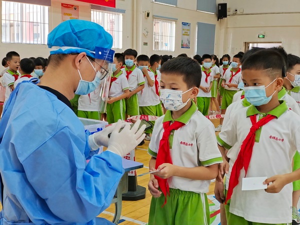 為了落實(shí)校園疫情防控相關(guān)工作要求,9月1日下午,學(xué)校組織全體學(xué)生及教職工開展了全員核酸檢測(cè)采樣工作。學(xué)校總務(wù)處提前對(duì)核酸檢測(cè)采樣場(chǎng)地、流程、路線規(guī)劃等工作進(jìn)行了專項(xiàng)部署。同學(xué)們手持定制的“核酸碼”小卡片,在老師的帶領(lǐng)下完成了核酸檢測(cè)采樣。香暉園小學(xué)僅用兩個(gè)小時(shí)就完成了兩千多人的核酸檢測(cè)采樣工作,充分體現(xiàn)出香小團(tuán)隊(duì)工作的高效性。香暉園小學(xué)將持續(xù)做好常態(tài)化疫情防控工作,織密扎牢校園疫情防控網(wǎng)。