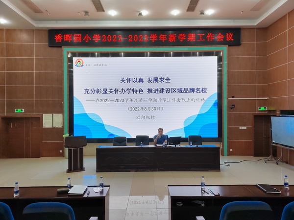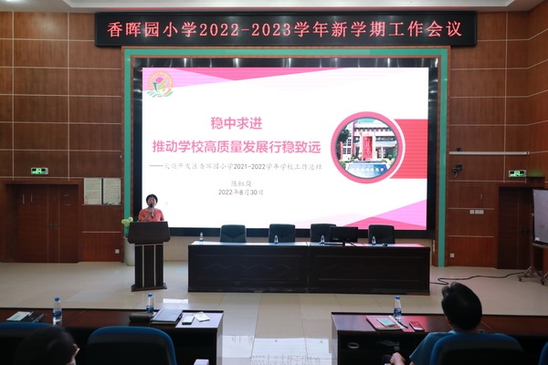 新學期,新目標;新起點,新征程。為推進學校新學期教育教學工作有序開展,8月30日上午,開發(fā)區(qū)香暉園小學在報告廳召開了新學期教師工作會議。本次會議由劉裕副校長主持,全體教師參加了本次會議。