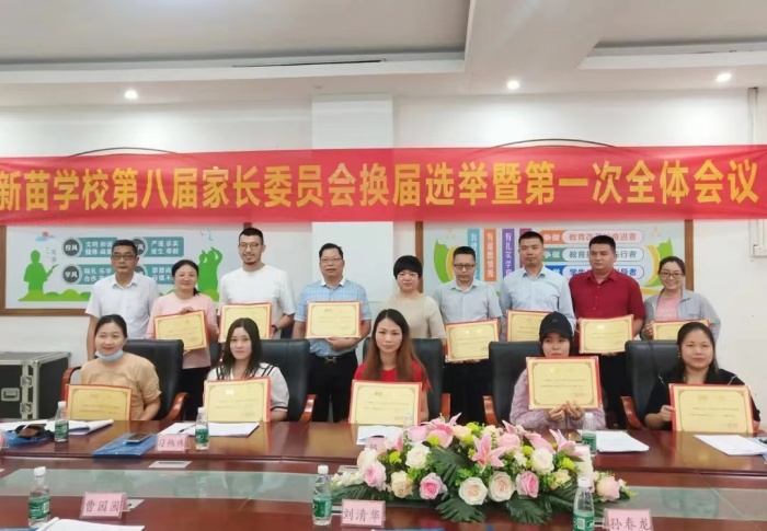 通過舉手表決,吳錫東、許愛民二位家長分別當(dāng)選為新苗學(xué)校第八屆家長委員會(huì)會(huì)長和秘書長。鄒校長和段校長為校級(jí)家委會(huì)委員頒發(fā)聘書。