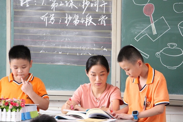 第一時(shí)段的服務(wù)內(nèi)容為作業(yè)托管。以學(xué)生自主作業(yè)、教師答疑解惑為主。老師們或耐心細(xì)致地答疑,或點(diǎn)對(duì)點(diǎn)進(jìn)行針對(duì)性輔導(dǎo),絕大部分學(xué)生能在校內(nèi)完成書(shū)面作業(yè),做到“減負(fù)不減質(zhì),松綁不松懈”。