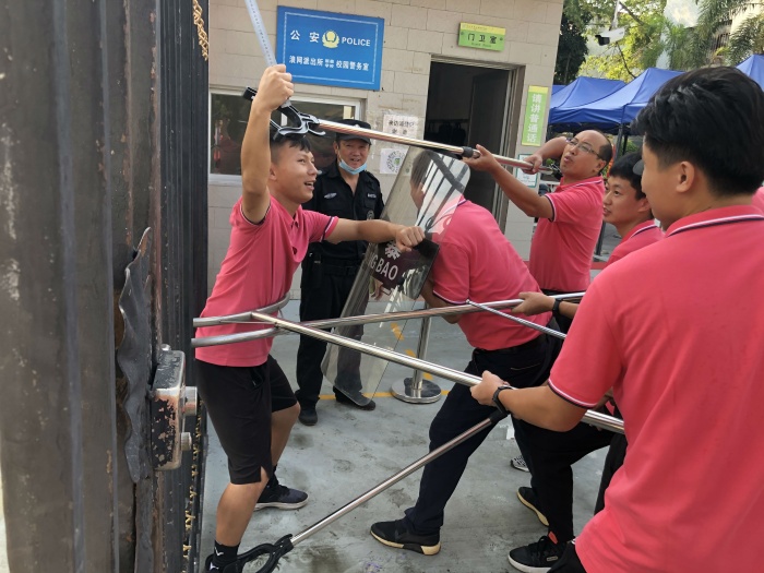 為有效預防、及時控制和消除校園重大突發(fā)事件的危害,保障師生身體健康與生命安全,維護學校正常的教育教學秩序,全面提高應(yīng)對恐怖和暴力能力。中山市民眾新徽學校于2021年9月10日上午組織應(yīng)急防暴組人員開展安全防暴反恐模擬演練活動。
