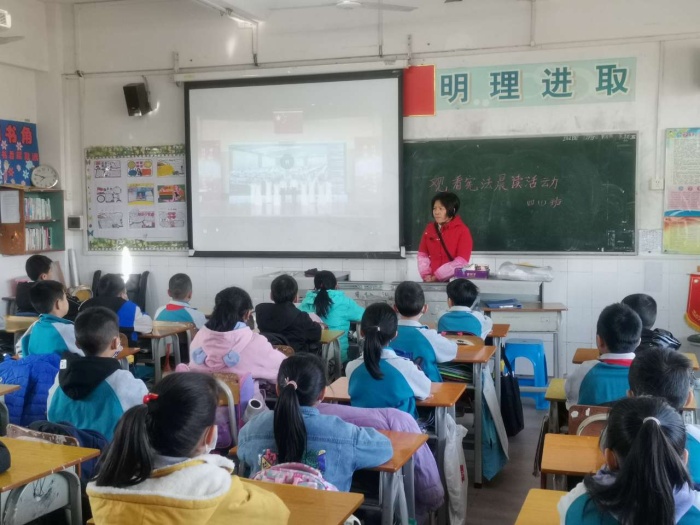12月3日上午第二節(jié)班會課上,教師帶領(lǐng)學(xué)生觀看直播“憲法晨讀”,較深刻地了解如何樹立憲法觀念等一系列重要的內(nèi)容。另外班會課上圍繞國家憲法日主題,以班隊活動形式組織學(xué)生集體學(xué)習(xí)。各班更是結(jié)合校情和學(xué)生的生活實際開展主題教育;有播放生活中青少年違法案例讓學(xué)生參與討論的;有從良好行為習(xí)慣的養(yǎng)成談如何做守法好公民的;有結(jié)合自身實際交流對憲法條文的認識理解。