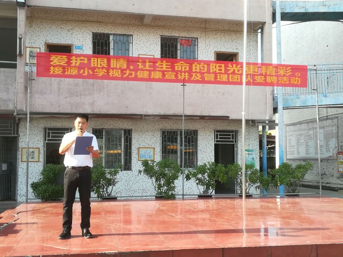活動在接源小學教導主任楊順球的演講中開始,他演講的題目是“愛護眼睛,保護視力”,強調眼睛對我們的重要性,呼吁大家愛護眼睛,保護視力,并提出保護視力的具體措施與建議。