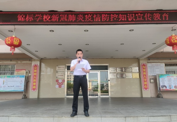 在晨會(huì)上,錦標(biāo)學(xué)校校長(zhǎng)陳德亮通過(guò)校園廣播,向全體師生上了一堂有關(guān)疫情防控知識(shí)的安全教育課。他強(qiáng)調(diào):當(dāng)前全國(guó)的疫情數(shù)據(jù)提示廣大師生防疫防控形勢(shì)的嚴(yán)峻,全體師生要引起高度重視。新冠肺炎病毒具有極大的傳染性,并向同學(xué)們強(qiáng)調(diào)了防控的重要性,要求所有同學(xué)積極響應(yīng)政府和學(xué)校的號(hào)召,向家人普及相關(guān)知識(shí),自覺(jué)遵守政府規(guī)定,疫情期間盡量不要外出,學(xué)會(huì)科學(xué)預(yù)防。陳校長(zhǎng)同時(shí)告訴大家:病毒并不可怕,可防可控,但需要采取科學(xué)的預(yù)防措施,要學(xué)會(huì)加強(qiáng)個(gè)人衛(wèi)生和個(gè)人防護(hù);要做到不信謠、不傳謠,堅(jiān)持科學(xué)防控,通過(guò)隔離傳染源、加強(qiáng)自我保護(hù)、阻斷傳播途徑等辦法進(jìn)行預(yù)防。