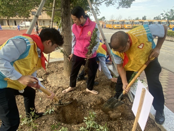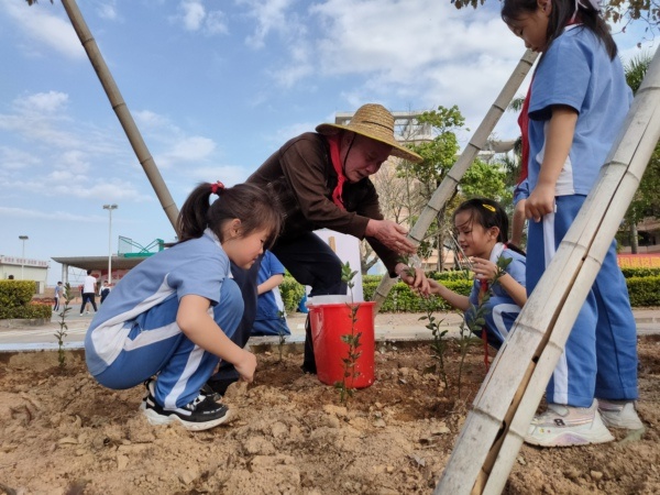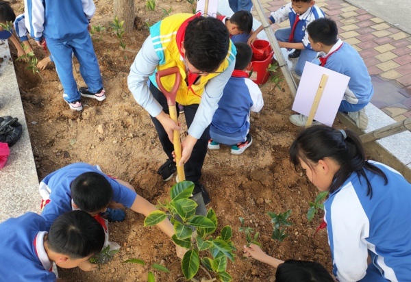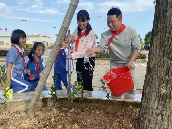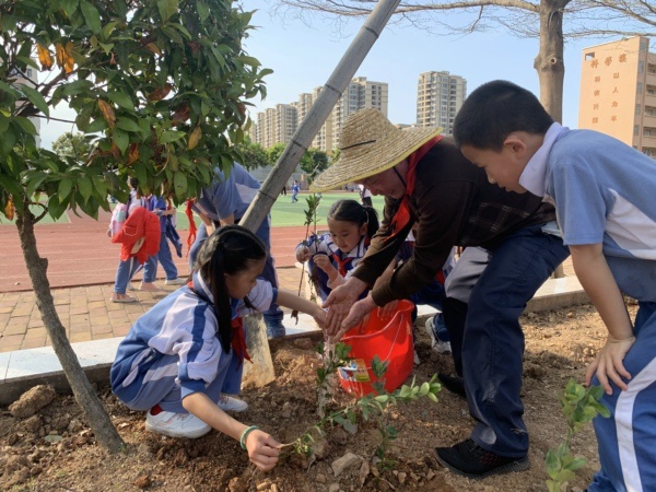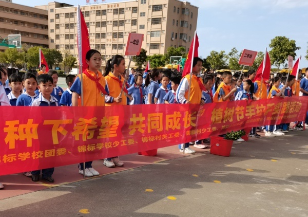 春回大地,萬物復(fù)蘇。3月10日下午,在3.12植樹節(jié)即將到來之際,錦標(biāo)學(xué)校與錦標(biāo)社區(qū)手拉手開展了“種下希望,共同成長”植樹節(jié)實踐活動,學(xué)校讓學(xué)生參與到植樹節(jié)活動中體驗勞動的樂趣,感受美化環(huán)境的意義。本次活動由錦標(biāo)學(xué)校團委和少工委、錦標(biāo)村關(guān)工委、錦標(biāo)村少工委、錦標(biāo)村團支部、錦標(biāo)村婦聯(lián)、錦標(biāo)村新時代文明實踐所手拉手聯(lián)合參與。錦標(biāo)學(xué)校校長陳德亮、錦標(biāo)學(xué)校德育副主任徐文亮、民眾街道關(guān)工委副主任黃再棉、錦標(biāo)村黨委副書記、關(guān)工委副主任梁浩文、村兩委干部梁潔瑩、村兩委干部梁杰俊、錦標(biāo)學(xué)校團隊負(fù)責(zé)人以及300多位少先隊員代表參與了本次實踐活動。