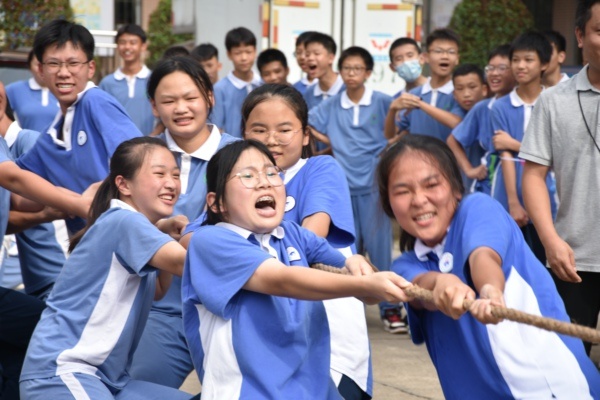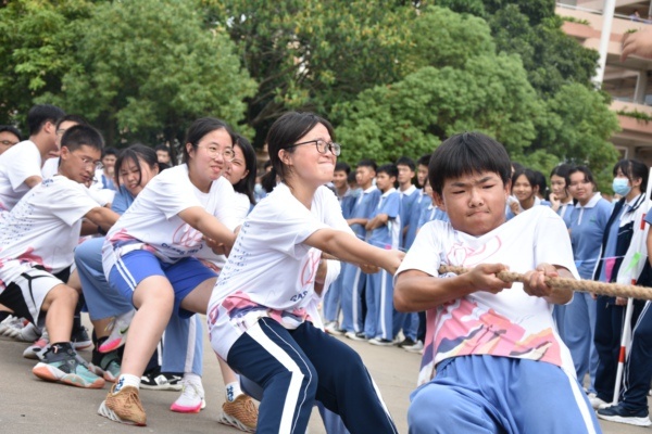為豐富校園文化生活,增強班級凝聚力,提高學(xué)生團隊合作和堅韌不拔的精神,我校八、九年級還開展了拔河比賽。當(dāng)比賽的哨聲響起,只見參賽的同學(xué)們緊握長繩,鉚足了勁拼命拼命往后拉。未參加的同學(xué)自發(fā)組成拉拉隊為比賽隊員吶喊加油,哨子聲、吶喊聲此起彼伏,現(xiàn)場激烈的比賽將整個活動推到高潮!比賽過程中,各班參賽隊員努力拼搏,無論是場上還是場下,氣氛都異常激烈?,F(xiàn)場拉拉隊員個個熱情高漲吶喊助威給比賽增添了一抹亮色,每一聲吶喊都帶來一股力量。經(jīng)過一番激烈的角逐,同學(xué)們?yōu)⑾铝撕顾?,收獲了希望 。拔河比賽提高了同學(xué)們的團隊合作意識和堅韌不拔的精神。尤其是在勝負難分的時刻,大家毫不退卻,咬緊牙關(guān),堅持到底。賽場上的同學(xué)們個個斗志昂揚,他們頑強的毅力與拼搏的精神讓每一個人感動。希望他們能夠繼續(xù)發(fā)揚堅毅的精神,以飽滿的熱情備戰(zhàn)期末考試。