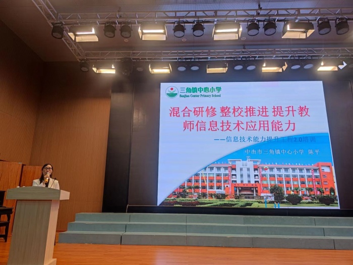 隨后,由三角中心小學副校長陳平芳對全體教師進行了能力提升工程2.0培訓。
