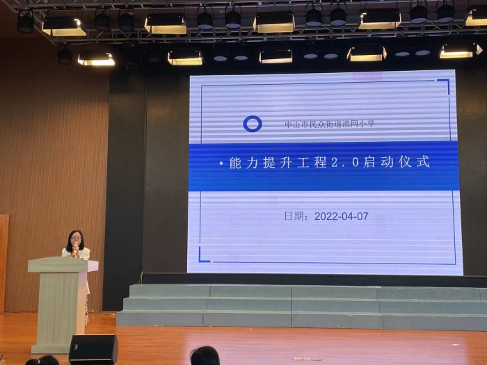 為促進信息技術與教育教學融合創(chuàng)新發(fā)展,推動全校教師信息技術應用水平的提升,迎接中山市信息技術應用能力提升工程 2.0 整校推進工作,2022年4月7日上午,“浪網(wǎng)小學能力提升工程2.0啟動儀式”在浪網(wǎng)小學階梯室舉行,學校副校長楊嵐主持,全校老師參加。