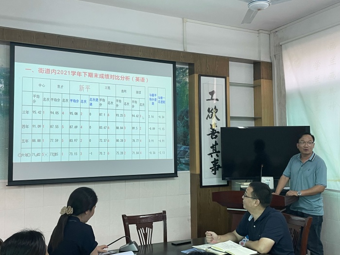 然后,英語(yǔ)科組長(zhǎng)吳照輝老師對(duì)英語(yǔ)科組近三年的整體成績(jī)進(jìn)行簡(jiǎn)要的分析,他指出近三年新平小學(xué)三、五、六年級(jí)英語(yǔ)成績(jī)較好,平均分排位居本鎮(zhèn)前列,四年級(jí)成績(jī)中等偏下,針對(duì)此情況,英語(yǔ)科組制定出具體的改進(jìn)措施,并且提醒科組老師相互借鑒方法、分享資源 ,特別在加大培優(yōu)輔差的力度、關(guān)注學(xué)困生等方面進(jìn)行剖析。