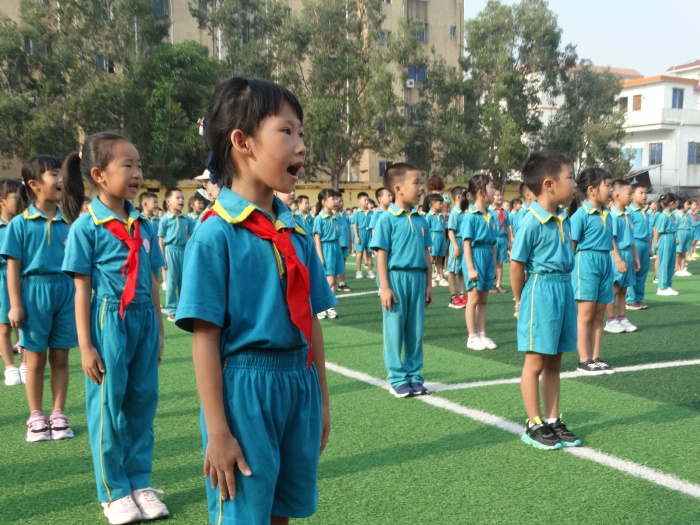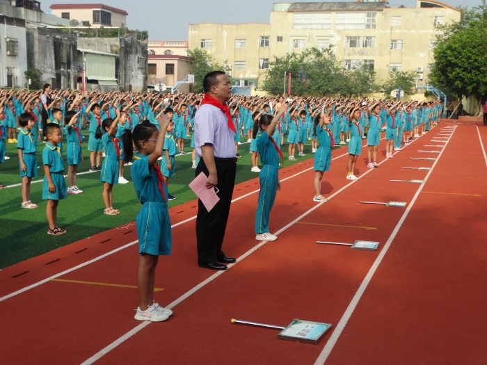 首先舉行了莊嚴的升國旗儀式。在雄壯的國歌聲中,鮮艷的五星紅旗冉冉升起,全體師生注目國旗,心懷崇敬與自豪,也滿懷對新學期的美好期待。接著,民眾中心小學馬耀強校長發(fā)表了講話。馬校長表達了對新同學與新老師的歡迎,并在中國抗日戰(zhàn)爭勝利紀念日暨世界反法西斯戰(zhàn)爭勝利紀念日來臨之際,與大家一起回顧了抗戰(zhàn)歷史。馬校長還轉述了習近平總書記對新時代少先隊員的期待,希望廣大少先隊員能按照總書記指明的成長方向,從小學先鋒、長大做先鋒,努力成為能夠擔當民族復興大任的時代新人。最后,陳曉雄主任與同學們一起重溫了各項文明行為規(guī)范,希望孩子們能繼續(xù)遵守各項規(guī)章制度,爭做文明學生,全面發(fā)展。
