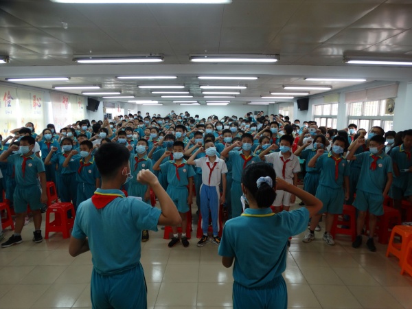 2020年7月17日上午,民眾中心小學六年級全體學生、教師、家長代表及校領(lǐng)導在階梯室舉行以“心懷感恩 放飛夢想”為主題的畢業(yè)典禮。