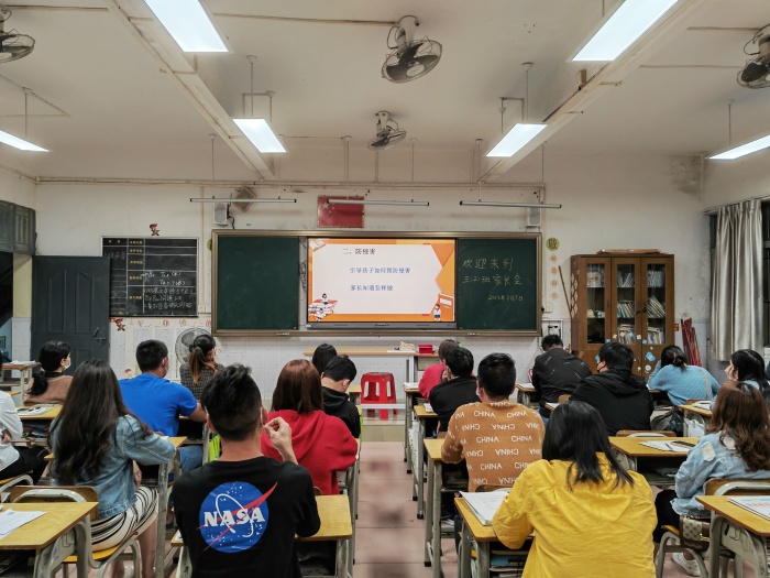 家長會上,首先由楊良萍主任作家庭教育培訓(xùn)講座及進行安全教育。楊主任向所有家長解讀《廣東省中小學(xué)家庭教育親子溝通指引》,包括充分認識家庭教育中親子溝通的重要作用、家庭教育中親子溝通的基本認知、親子溝通的基本原則、親子溝通十個“禁忌”、親子溝通中孩子喜歡聽的十種表達等方面,并有針對性地播放家庭教育視頻,使家長們對親子溝通有更多認識,提高教育孩子的能力,讓孩子得到良好的家庭教育。另外,楊主任就防溺水、防侵害、交通安全、心理健康、用電用火安全、食品安全等方面也提醒廣大家長在日常生活中注意引導(dǎo)孩子。