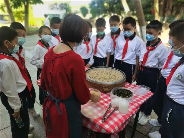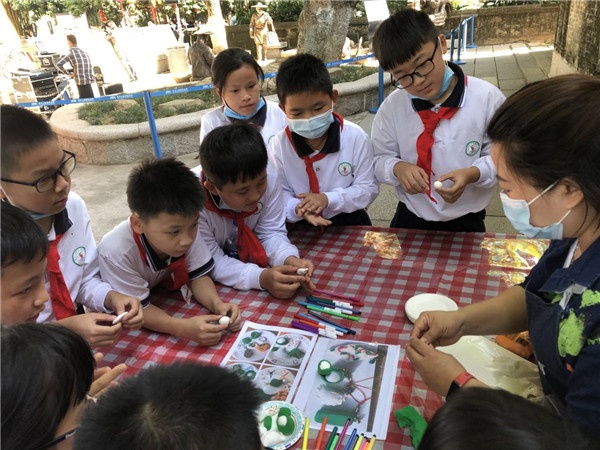 表演結(jié)束后,同學(xué)們?cè)谛血{隊(duì)員的指導(dǎo)下感受了頂獅的樂(lè)、醉龍的步伐、品嘗三鄉(xiāng)茶果,制作茶果 。整個(gè)下午其樂(lè)融融,以至于離開(kāi)時(shí)同學(xué)們都有些戀戀不舍,他們既收獲了快樂(lè),也了解了中山非物質(zhì)文化的一些知識(shí)。