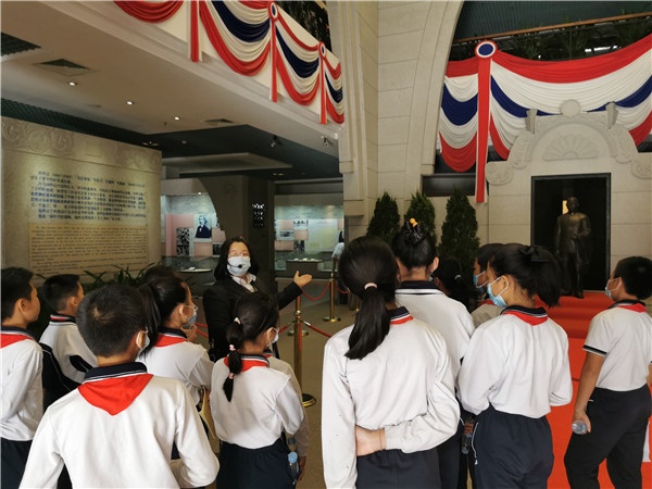 上午8:30,學(xué)校的紀(jì)念活動(dòng)還在如火如荼地進(jìn)行,少先隊(duì)大隊(duì)輔導(dǎo)員譚杏湘老師和林翠老師便帶著15名學(xué)生代表步行前往孫中山故居參加紀(jì)念活動(dòng)。儀式上,學(xué)生代表劉濼祺、劉宇婷向?qū)O中山遺像敬獻(xiàn)花籃,現(xiàn)場(chǎng)莊嚴(yán)肅穆。孫中山像在故居的正中央懸掛著,昭示著我們要不忘初心,“革命尚未成功,同志仍需努力”。隨后,在故居講解員孫老師的帶領(lǐng)下,學(xué)校宣講紅色基因文化的導(dǎo)游隊(duì)的15名學(xué)生代表到紀(jì)念館進(jìn)行了歷史知識(shí)學(xué)習(xí)。孫老師娓娓道來(lái),大家聽(tīng)得津津有味。