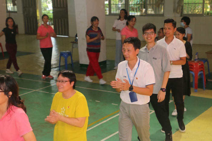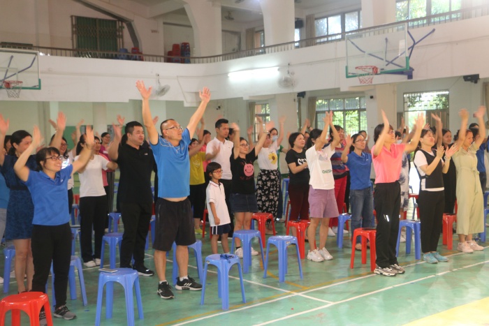 聽(tīng)著歡快的音樂(lè),全體工會(huì)會(huì)員來(lái)到學(xué)校的禮堂坐好,主持人周家昌老師走上舞臺(tái)宣布活動(dòng)開(kāi)始?;顒?dòng)的第一個(gè)環(huán)節(jié)是全體行政領(lǐng)著教職工們做“葛吉夫拍手操”。這是一個(gè)訓(xùn)練專注力和耐心的拍手操,也是一個(gè)很好的放松活動(dòng)。開(kāi)學(xué)一個(gè)月,教職工們忙忙碌碌,身心疲憊,這個(gè)操讓大家身心放松。在行政領(lǐng)導(dǎo)們的帶領(lǐng)下,全體教職工整齊歡快的做著拍手操。